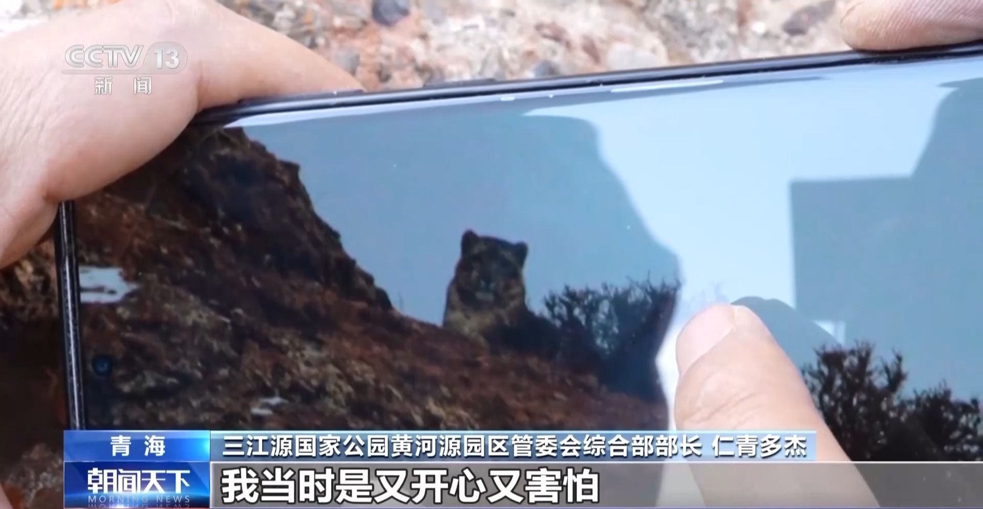 三江源國(guó)家公園黃河源園區(qū)管委會(huì)綜合部部長(zhǎng) 仁青多杰:懸崖邊,我把頭一伸,雪豹?jiǎng)偤镁驮谶@,我當(dāng)時(shí)是又開(kāi)心又害怕,它也不驚也不跑。