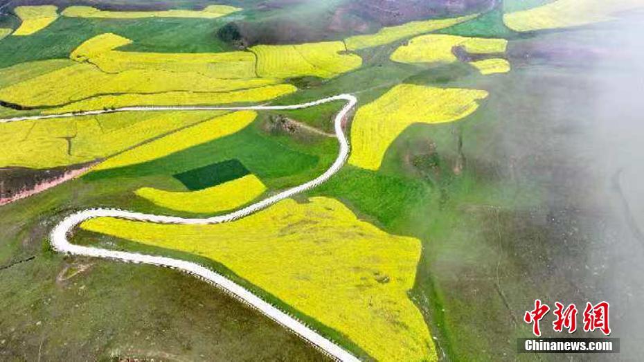 進(jìn)入7月,因氣候等原因,青海高原的油菜花迎來年度最佳觀賞期。16日,攝影師在青海省海東市化隆縣二塘鄉(xiāng),航拍萬畝油菜花海。此間油菜花海,如金色地毯,與周邊青稞等農(nóng)作物形成鮮明對(duì)比。圖為山間的油菜花海。
