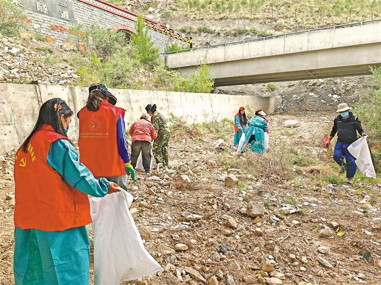 行動(dòng)中,大家手持垃圾袋、清掃工具,各盡其責(zé),對(duì)隧道下的公共林區(qū)、后山周邊、背街小巷等處的白色垃圾、建筑垃圾、生活垃圾進(jìn)行集中清理。隨后,拉薩市政府國資委機(jī)關(guān)黨支部在社區(qū)開展了“環(huán)保綠色 擁抱未來”倡導(dǎo)綠色理念的宣傳活動(dòng),并向社區(qū)全體網(wǎng)格工作人員發(fā)放了日常工作所需的環(huán)保用品。
