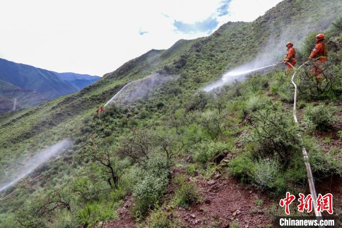 西藏昌都森林消防野外駐訓(xùn)期間進行合圍滅火訓(xùn)練。姚天銳 攝