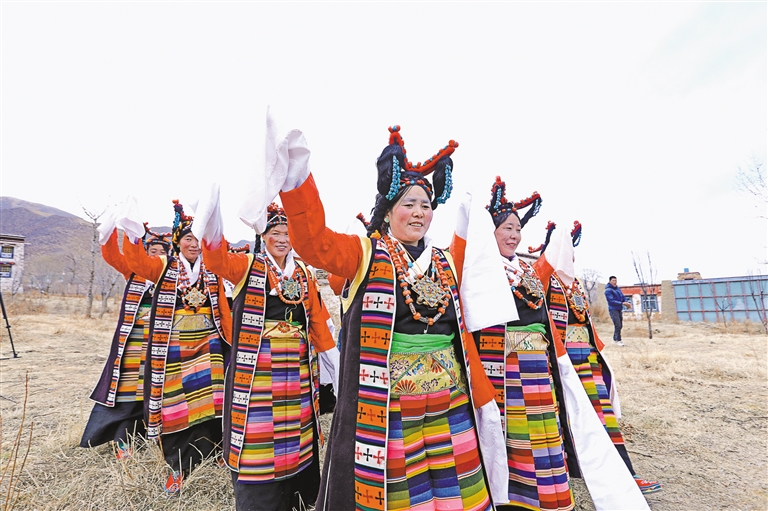 “如今,這支隊伍已發(fā)展到20多名成員,都是當?shù)厝罕姟K囆g(shù)隊經(jīng)常受邀參加各種大小晚會、重要節(jié)日演出和赴區(qū)內(nèi)外非遺展演等,其影響力和傳播力不斷提升,特別是甲瑪諧欽《和親路》受到廣泛歡迎。”甲瑪鄉(xiāng)工作人員德吉卓嘎說。