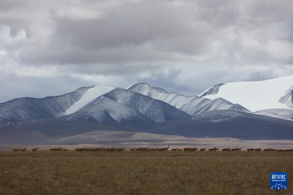 這是令戈錯湖邊的藏羚羊群(9月8日攝)。新華社記者 劉詩平 攝