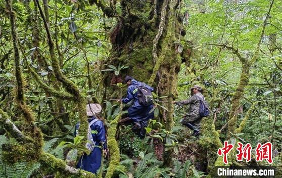 圖為科研人員開展保護區(qū)極小種群野生植物調(diào)查。林芝市林草局供圖
