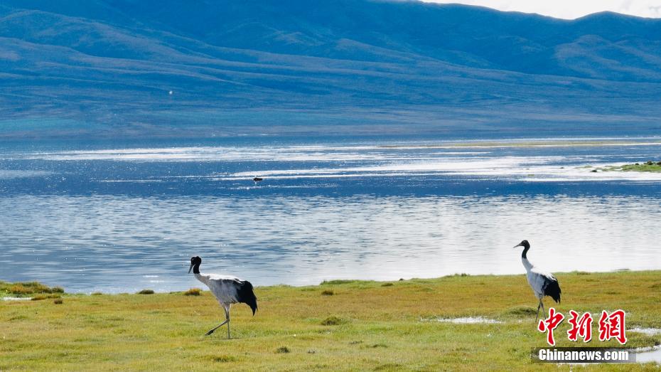 金秋9月,天氣漸涼,位于柴達(dá)木盆地的青海省海西州都蘭縣阿拉克湖國家濕地公園也日漸喧鬧起來,大批的候鳥從北方遷徙至此,提前來此過冬。9月18日,都蘭縣融媒體中心記者拍攝到了國家一級(jí)保護(hù)動(dòng)物黑頸鶴活動(dòng)的影像。畫面中,一對(duì)國家一級(jí)重點(diǎn)保護(hù)野生動(dòng)物、高原特有鶴類黑頸鶴在都蘭縣巴隆鄉(xiāng)阿拉克湖國家濕地公園的草原上嬉戲、覓食、“翩翩起舞”。阿拉克湖國家濕地公園位于青海省都蘭縣南部,屬于昆侖山系東部高原腹地,在布爾汗布達(dá)山南麓東西向延伸的河谷盆地內(nèi)。阿拉克湖濕地公園區(qū)域雖氣候寒冷,但這里高寒沼澤草甸景象壯觀,野生動(dòng)物眾多,具有獨(dú)特的生物多樣性價(jià)值。圖為兩只黑頸鶴在湖邊漫步。