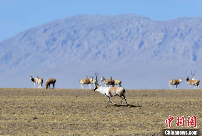 圖為12月8日,棲息在魯確塘草原的藏羚羊。中新社記者 李林 攝