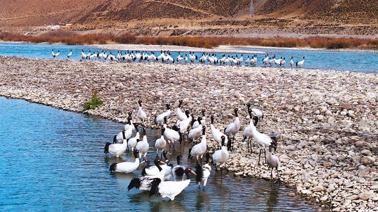 如今,一批又一批黑頸鶴從四川、青海等地啟程,歷經(jīng)近千公里的長途跋涉,紛紛抵達(dá)西藏各越冬地,開啟他們的越冬生活。