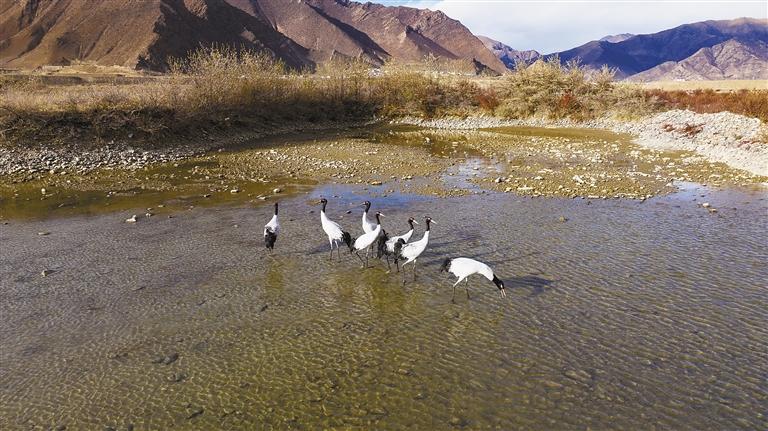 圖片均為黑頸鶴在墨竹工卡境內(nèi)棲息的場景。