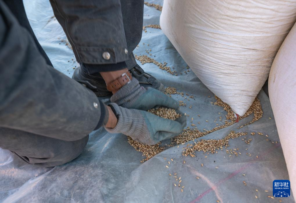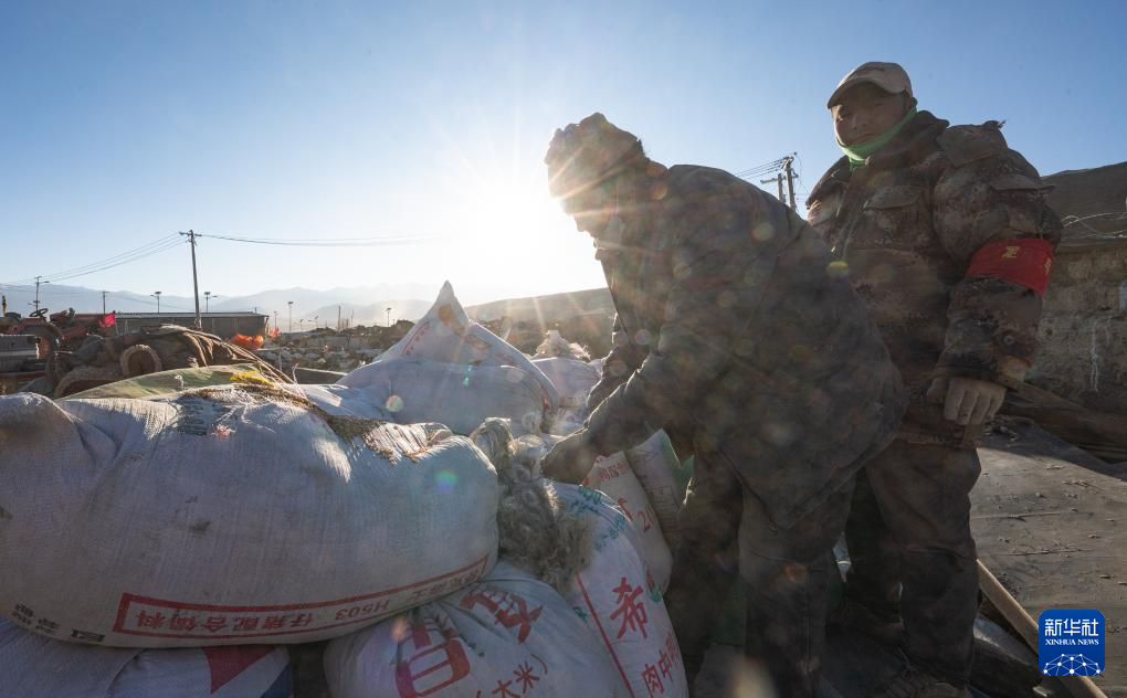 1月13日,在定日縣長所鄉(xiāng)古榮村,定日縣民兵在搬運青稞。新華社記者 丁增尼達 攝
