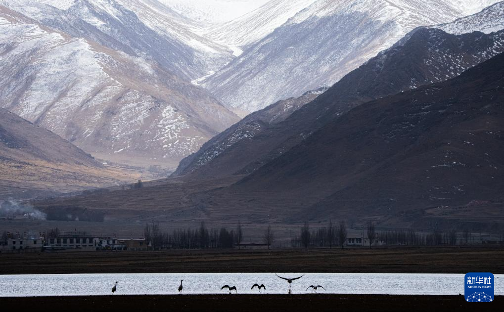 每年冬季,大批黑頸鶴在西藏拉薩市林周縣虎頭山水庫(kù)安家越冬?;㈩^山水庫(kù)周邊的沼澤地、湖泊及河灘為黑頸鶴提供了理想的越冬環(huán)境。