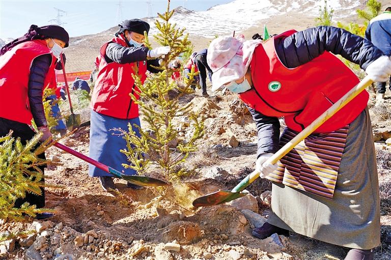 今年3月12日是第47個(gè)植樹節(jié)。當(dāng)天,西藏各地舉行了植樹活動(dòng),干部群眾紛紛走進(jìn)綠化區(qū)、綠化點(diǎn)參加義務(wù)植樹活動(dòng)。活動(dòng)現(xiàn)場(chǎng),大家熱情高漲,分工協(xié)作,配合默契。有的揮鍬鏟土,有的扶苗培土,有的踩實(shí)固根,還有的提桶澆灌,各個(gè)環(huán)節(jié)緊密銜接,現(xiàn)場(chǎng)一片繁忙。
