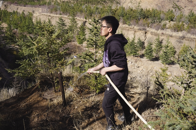 “你看那邊,再看那邊,現(xiàn)在都綠了?!崩_市南山公園安全負責人、護林員扎西曲培手指著南山自豪地說道,2012年他拍了一張照片,這兒只是一片荒山,滿地都是石頭,現(xiàn)在綠樹滿山,而且公園里的油松、白皮松、側(cè)柏等樹種已經(jīng)繁衍出了“樹二代。”。