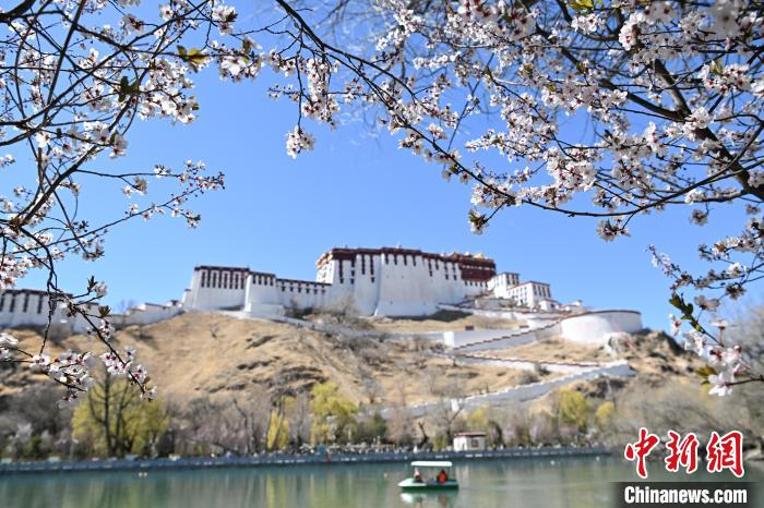 3月24日,在西藏自治區(qū)拉薩市宗角祿康公園,杏花競相綻放,春意盎然。中新社記者 貢嘎來松 攝