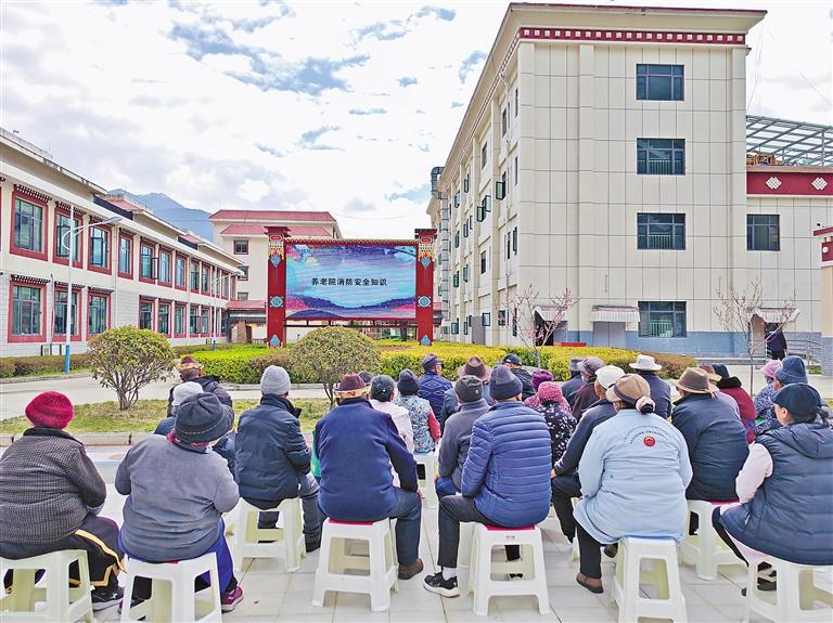 林芝市巴宜區(qū)消防救援大隊宣傳人員走進養(yǎng)老機構(gòu)開展消防安全宣傳。通訊員 才旺多吉 攝