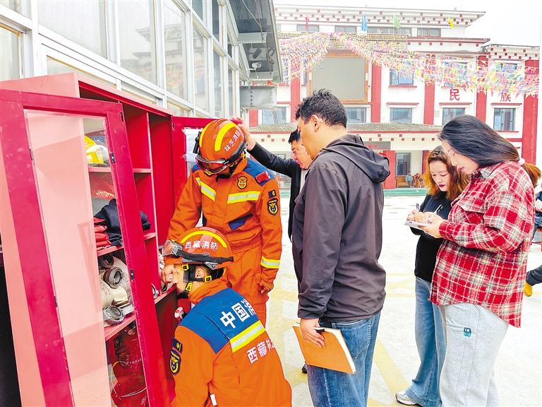林芝市墨脫縣消防救援大隊宣傳人員檢查養(yǎng)老機構(gòu)微型消防站的消防器材。通訊員 才旺多吉 攝