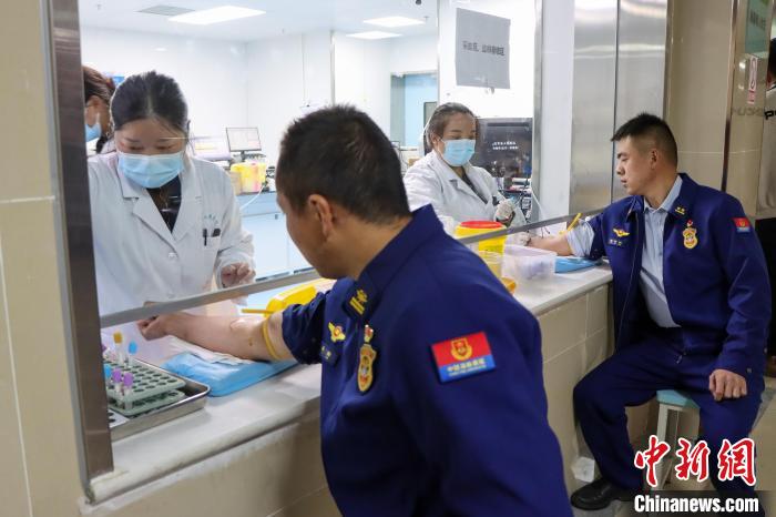 圖為4月23日,西藏左貢森林消防員到醫(yī)院獻(xiàn)血。姚天銳 攝