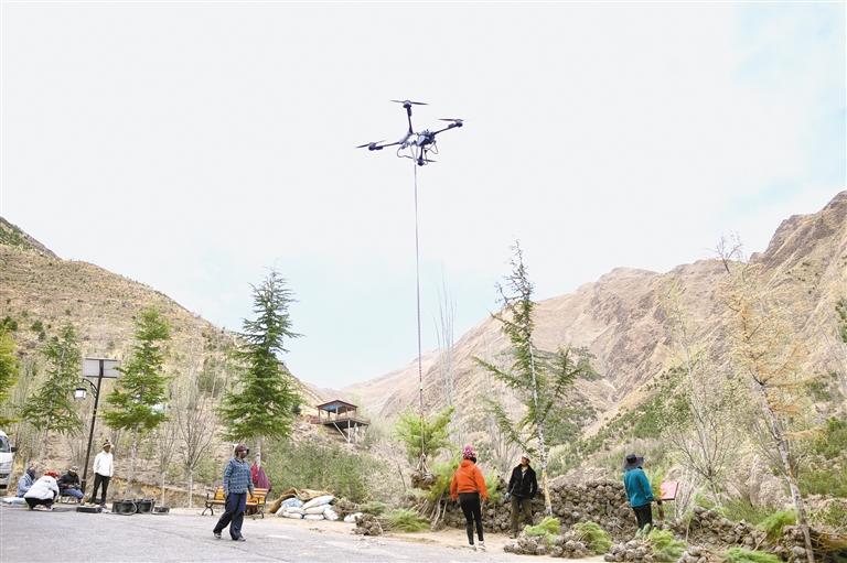 為了解決南北山綠化工程推進(jìn)過程中存在的樹苗搬運耗時費力、效率低問題,西藏因地制宜、積極創(chuàng)新,推行無人機(jī)運輸苗木技術(shù),極大提升了綠化工作的效率。無人機(jī)的使用能夠快速將樹苗精準(zhǔn)投放到指定區(qū)域,以往需要數(shù)天才能完成的樹苗運輸工作,現(xiàn)在僅需幾個小時就能完成,大大縮短了綠化作業(yè)的周期。