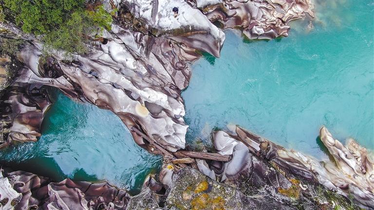 在丙察察公路接近察隅縣城的位置,國道219線與559線交匯點,有一處由水流反復(fù)沖刷激蕩出的地質(zhì)奇觀——水磨巖。