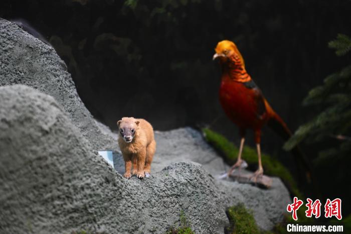 6月16日,在位于甘肅省張掖市肅南裕固族自治縣的祁連山國家公園自然博物館展陳的黃鼬標(biāo)本(左)。中新社記者 李亞龍 攝