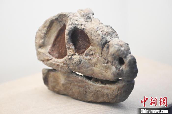 6月16日,在位于甘肅省張掖市肅南裕固族自治縣的祁連山國家公園自然博物館展陳的二疊紀(jì)大山口珍稀獸頭骨。中新社記者 李亞龍 攝