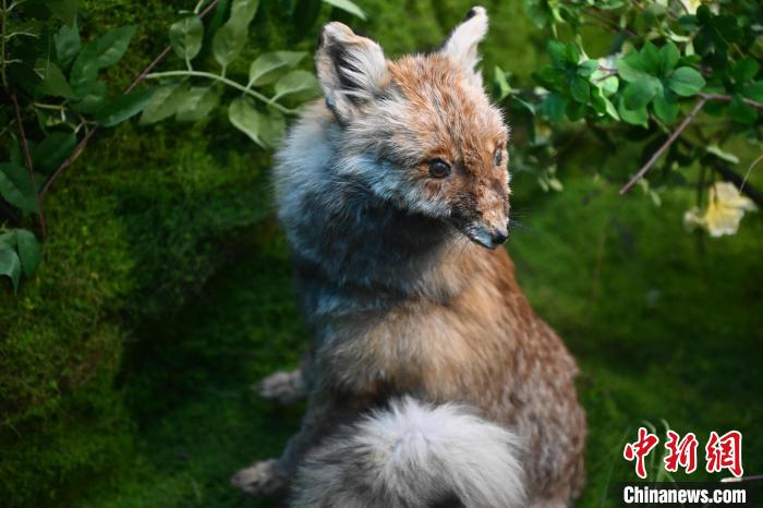6月16日,在位于甘肅省張掖市肅南裕固族自治縣的祁連山國家公園自然博物館展陳的赤狐標(biāo)本。中新社記者 李亞龍 攝
