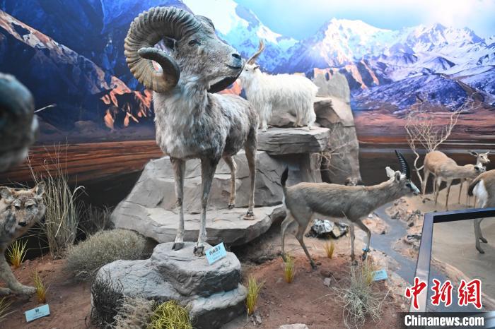 6月16日,在位于甘肅省張掖市肅南裕固族自治縣的祁連山國家公園自然博物館展陳的西藏盤羊標(biāo)本。中新社記者 李亞龍 攝