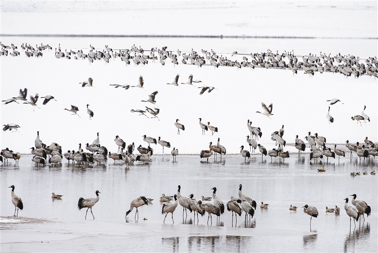 “2018年申扎濕地公園建成后,每年都會有黑頸鶴來到這里養(yǎng)育寶寶。”正在散步的居民瓊達笑著告訴記者,“黑頸鶴是申扎縣的‘明星’,也是申扎縣良好生態(tài)的一張名片。我們爭當黑頸鶴的保護者,顯然黑頸鶴也把我們當作它們的好朋友了。”