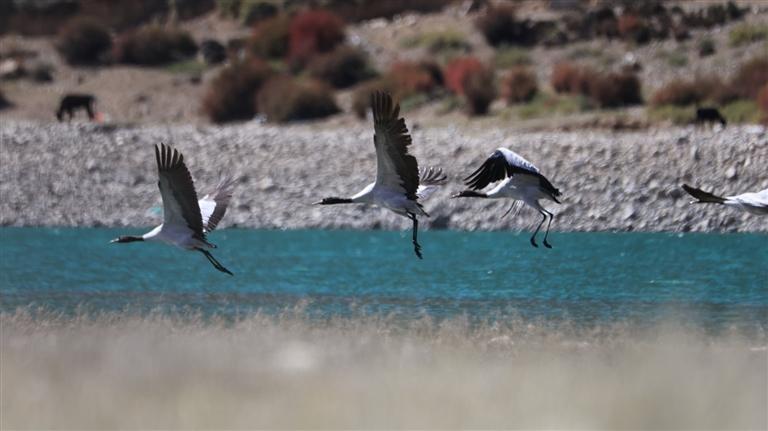 據(jù)了解,每年10月中下旬,前往墨竹工卡縣越冬的黑頸鶴會(huì)陸續(xù)抵達(dá),它們的活動(dòng)范圍主要集中在唐加鄉(xiāng)、扎西崗鄉(xiāng)、工卡鎮(zhèn)、甲瑪鄉(xiāng)及扎雪鄉(xiāng)一帶,成為當(dāng)?shù)厍锒竟?jié)一道獨(dú)特的生態(tài)風(fēng)景線。在西藏,黑頸鶴的身影遍布55個(gè)縣域,它們主要選擇高原河流、湖泊、沼澤和草甸等濕地作為棲息地。隨著西藏生態(tài)環(huán)境的改善以及人們對(duì)野生動(dòng)物保護(hù)意識(shí)的增強(qiáng),黑頸鶴的種群數(shù)量也在逐漸增多。2000年,黑頸鶴的數(shù)量大概是4000只,到現(xiàn)在整個(gè)西藏越冬區(qū)記錄到黑頸鶴的數(shù)量超過(guò)1萬(wàn)只。