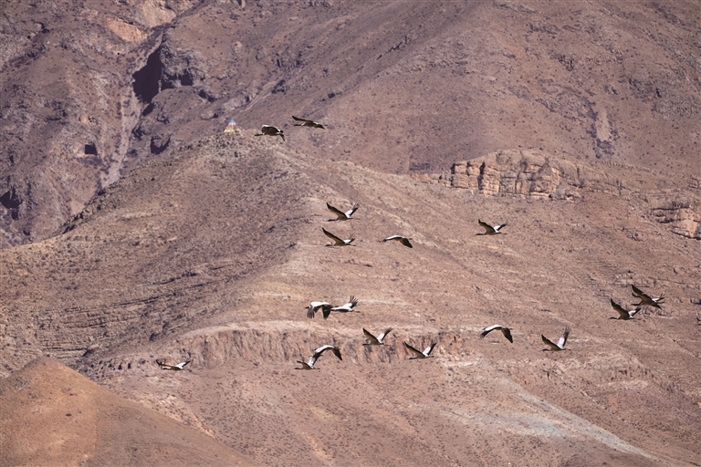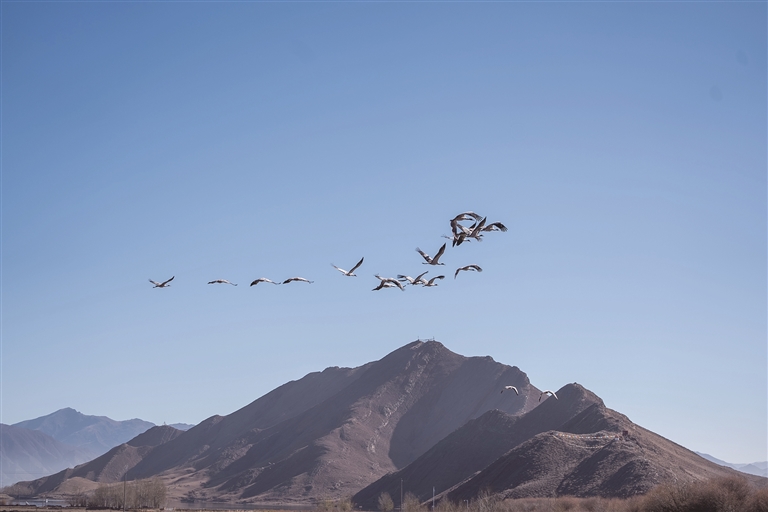 寒冬到來,雅江中游河谷黑頸鶴國家級自然保護區(qū)林周澎波區(qū)域迎來大批越冬黑頸鶴。作為國家一級保護動物、高原特有珍稀物種——黑頸鶴,2025年6月被正式評為拉薩市鳥,成為城市生態(tài)文化名片。它們在此駐足棲息、覓食嬉戲,勾勒出一幅人與生靈和諧共生的美好圖景。林周縣以制度護航、全民參與、科學(xué)管護等方式筑牢保護屏障,讓“高原仙子”安穩(wěn)越冬,用種群遞增印證高原生態(tài)保護實效。
