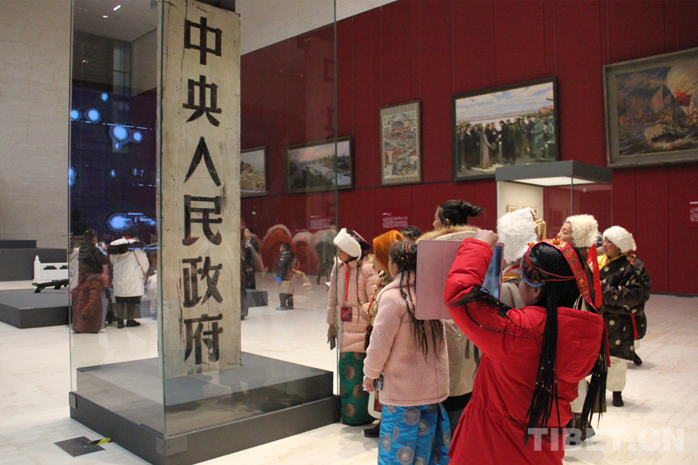 圖為“萌娃”們參觀中華人民共和國(guó)成立初期曾懸掛在北京中南海新華門(mén)內(nèi)的中央人民政府木牌 攝影:李元梅