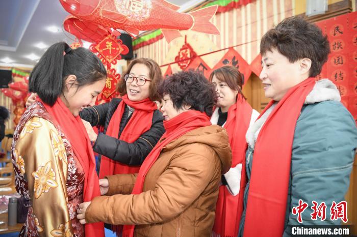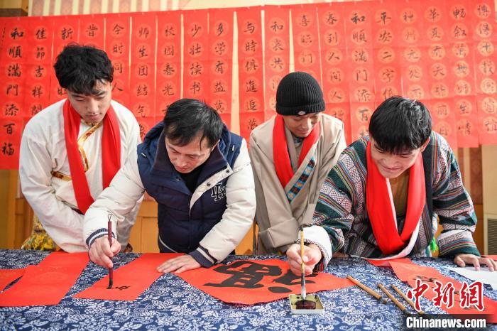 寫春聯(lián)、掛燈籠、做湯圓……在綿綿的藏歌聲中,留校西藏學生向陪伴他們連續(xù)度過了兩年春節(jié)的“代表媽媽”們敬獻了潔白哈達,而“代表媽媽”則為她們的“西藏孩子”們圍上了紅色圍巾,互相傳遞著美好祝愿。
