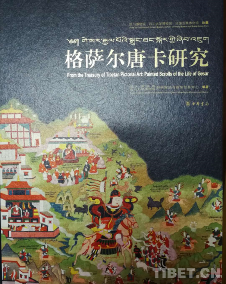 楊嘉銘先生獲得霍巍教授等關(guān)于四川博物院《格薩爾》唐卡研究國家課題結(jié)題成果——《格薩爾唐卡研究》圖書掃描件后,立刻分享給我全本。此后,霍巍教授親手寄贈一冊。圖為圖書封面。