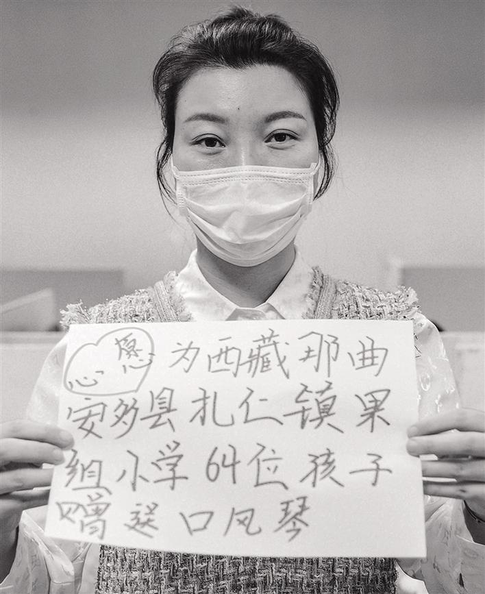 3月6日,為了讓奮戰(zhàn)在抗疫一線的英雄感受到社會(huì)的敬意,阿里巴巴天天正能量聯(lián)合全國(guó)媒體發(fā)起了“共圓英雄夢(mèng)”活動(dòng)。記者詢(xún)問(wèn)柏雪有什么心愿,她說(shuō):“我想給西藏那曲市安多縣扎仁鎮(zhèn)果組小學(xué)的64名孩子送口風(fēng)琴!”
