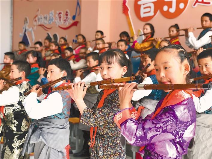 圖為孩子們?cè)谖鞑刈灾螀^(qū)青少年宮學(xué)習(xí)樂(lè)器。記者 央金 攝