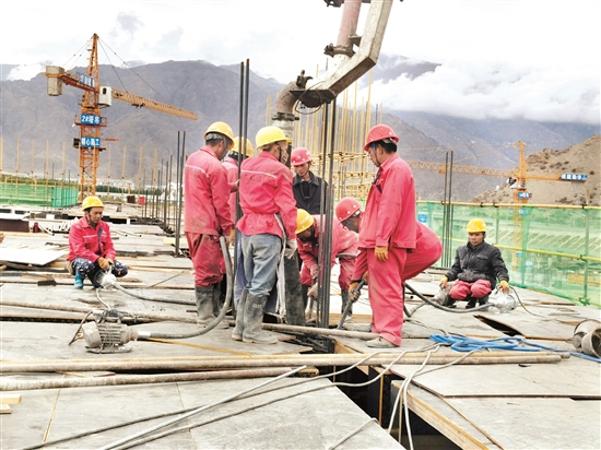 西藏技師學(xué)院項(xiàng)目位于柳東大橋以北,南環(huán)路與拉日鐵路交叉南側(cè),建筑面積約128700平方米。5月20日,記者在建設(shè)現(xiàn)場看到,塔吊等各種大型機(jī)械設(shè)備不停運(yùn)轉(zhuǎn),翻斗車等施工車輛來回穿梭,所到之處都是工人忙碌的身影。在結(jié)束兩個月的地基處理及基礎(chǔ)分部工程施工后,項(xiàng)目按計(jì)劃順利進(jìn)入主體施工階段。