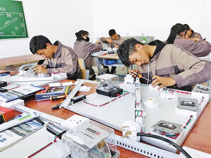 西藏技師學院的學生們在上電工實訓課程,為將來走上工作崗位奠定基礎(chǔ)。記者 孫文娟 攝