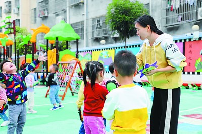 圖為鷹潭市高新區(qū)社會(huì)事業(yè)局高級(jí)教師在小英小學(xué)和小朋友們一起開(kāi)主題班會(huì)。曾志凡攝/光明圖片