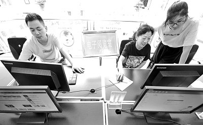 湖北襄陽高新區(qū)東風(fēng)社區(qū)電子閱覽室為居民提供免費(fèi)線上閱讀服務(wù)。新華社發(fā)