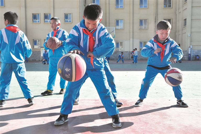 圖為拉薩市實(shí)驗(yàn)小學(xué)學(xué)生在教練員帶領(lǐng)下進(jìn)行籃球訓(xùn)練。趙耀鐵攝