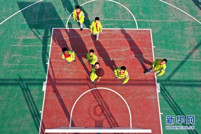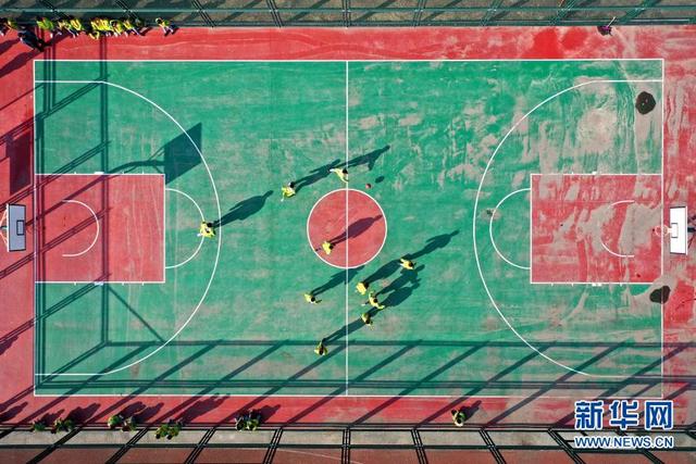 11月12日,學(xué)生在大課間打籃球(無人機(jī)照片)。 位于山東省青島市即墨區(qū)的青島藍(lán)谷高新區(qū)東皋埠小學(xué)是一所鄉(xiāng)村學(xué)校,近年來,學(xué)校開展以乒乓球、籃球、跳繩等運(yùn)動為主的大課間活動,讓孩子們在享受運(yùn)動的同時愉悅身心,增強(qiáng)體質(zhì)。 新華社發(fā)(梁孝鵬攝)