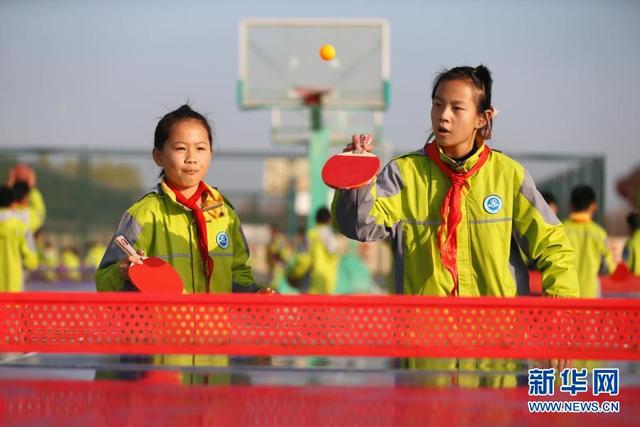 11月12日,學(xué)生在大課間打乒乓球。 位于山東省青島市即墨區(qū)的青島藍(lán)谷高新區(qū)東皋埠小學(xué)是一所鄉(xiāng)村學(xué)校,近年來,學(xué)校開展以乒乓球、籃球、跳繩等運(yùn)動為主的大課間活動,讓孩子們在享受運(yùn)動的同時愉悅身心,增強(qiáng)體質(zhì)。 新華社發(fā)(梁孝鵬攝)