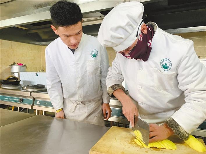 圖為那曲吉薩職業(yè)技能培訓學校烹飪班學員在學習紅案技能。