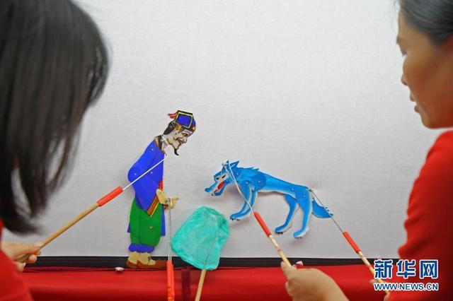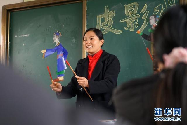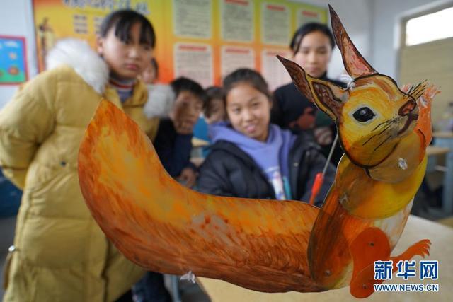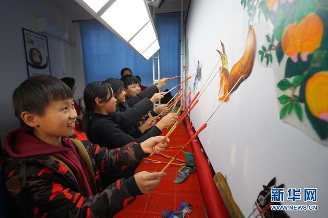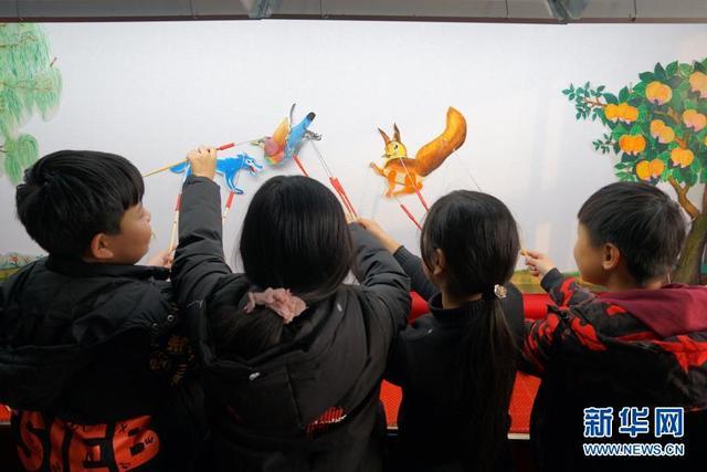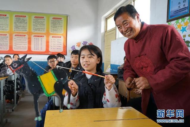 11月24日,皮影戲藝人在河北省沙河市西油村小學(xué)表演皮影戲。