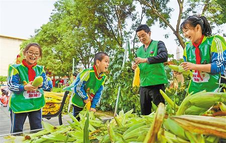 蘭州市紅山根小學(xué)的學(xué)生們在豐收的喜悅中,感受到了糧食的來之不易。