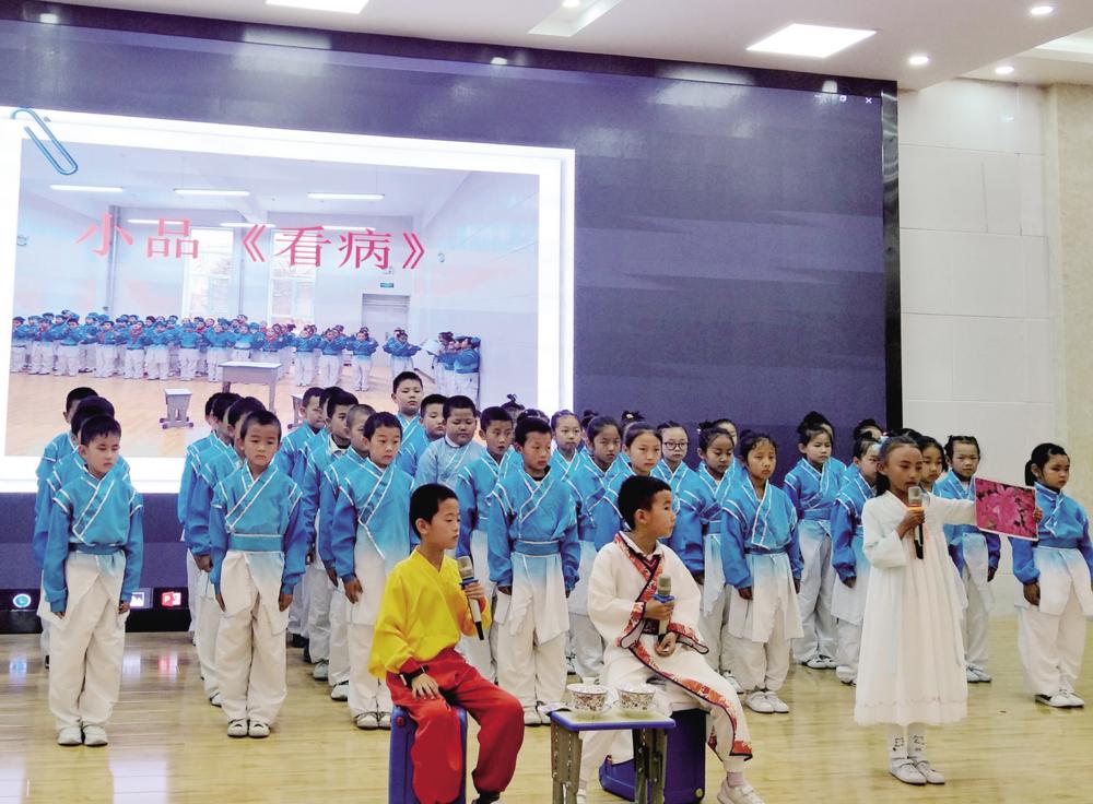 學(xué)生表演中醫(yī)藥文化主題小品。鄧金霞 攝