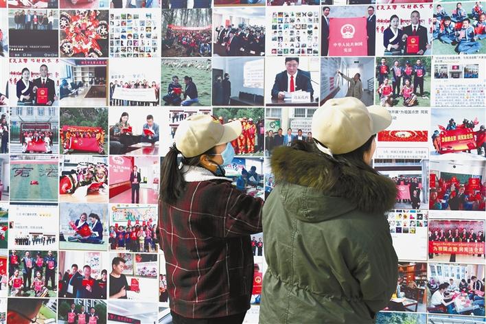 圖為群眾在參觀“我與憲法合影”背景墻。王杰學 攝