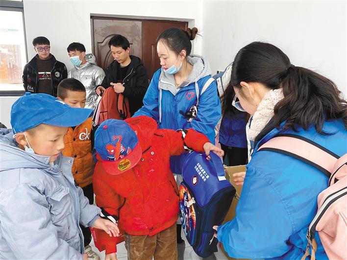 圖為拉薩市堆龍德慶區(qū)志愿者為參加活動(dòng)的學(xué)生分發(fā)書包等禮品。拉巴桑姆 攝