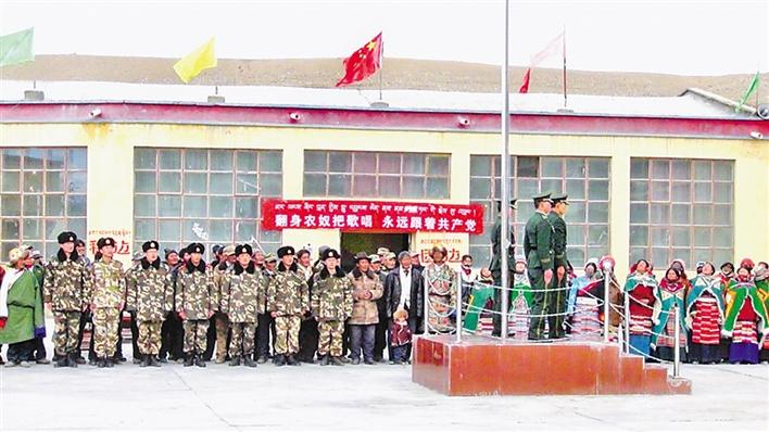 圖為3月28日,烏江村軍民聯(lián)合開展“翻身農(nóng)奴把歌唱 永遠跟著共產(chǎn)黨”升國旗活動。