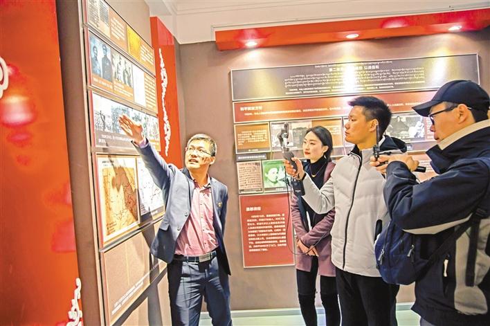 圖為波密縣委紅樓的工作人員在為慕名而來(lái)參觀的游客講解紅樓歷史。張猛 胡文 攝