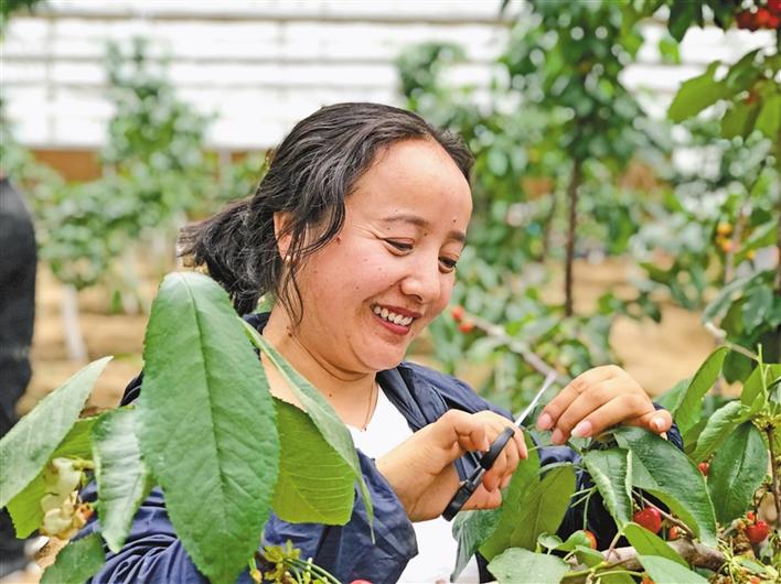 拉薩尼木縣現(xiàn)代農(nóng)業(yè)產(chǎn)業(yè)園車厘子種植負責人德吉(縣自然資源局干部)和基地內(nèi)其他6名“點對點”產(chǎn)業(yè)幫扶干部一起,“手把手”教授98戶建檔立卡貧困戶學習種植技術,實現(xiàn)車厘子、有機蔬菜種植產(chǎn)值100余萬元,帶動群眾585人次,兌現(xiàn)勞務分紅25萬元。既管了群眾“肚子”,又富了群眾“腦子”,還增進了民族團結。