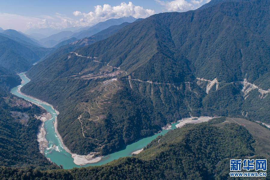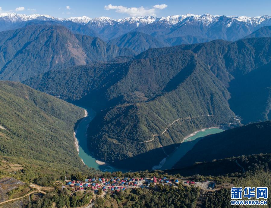 西藏林芝市墨脫縣德興鄉(xiāng)巴登則村位于雅魯藏布江邊的一座山上(2月9日攝,無人機照片)。新華社記者 孫非 攝
